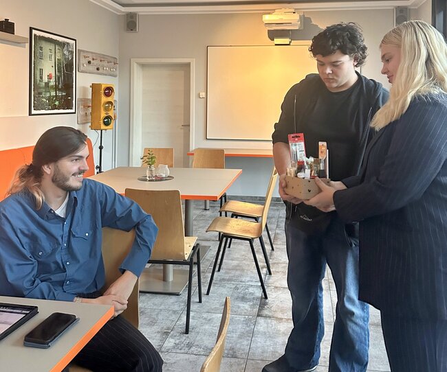 Foto: Die Jugendstadträte Hanna Zabel und Karl Pinkert danken Friedrich Hagen Fuß (v.r.n.l.)/Foto: Henning A. Habel