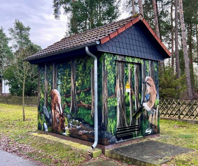 Für eine angenehme Überraschung sorgte noch kurz vor Weihnachten der regionale Energieversorger enviaM in Oranienbaum. Das Unternehmen ließ die Transformatoren-Station Marienstraße/Ecke Weststraße mit erheblichem Aufwand künstlerisch aufwerten. Auf den Wänden des kleinen Gebäudes sind nunmehr - statt der unansehnlichen Graffitis - ein Reh, ein Eichelhäher und ein stattlicher Hirsch zu sehen. Die Umgestaltung ist überaus gelungen und sehr passend für den Standort. Wir hoffen, dass es nun auch so bleibt und die wunderschönen Motive lange bewundert werden können.
