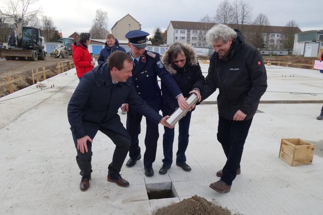 Im Fundament des Gebäudes wurde durch Herrn Strömer, Herrn Wieczorek (Stadtwehrleiter), Frau Luckmann (Ortsbürgermeisterin) und Herrn Kirchner eine Dokumentenhülse mit einer aktuellen Tageszeitung eingegraben.